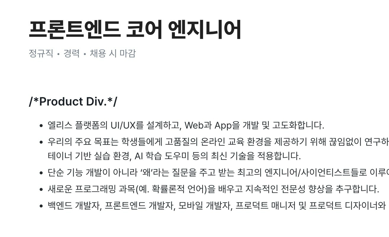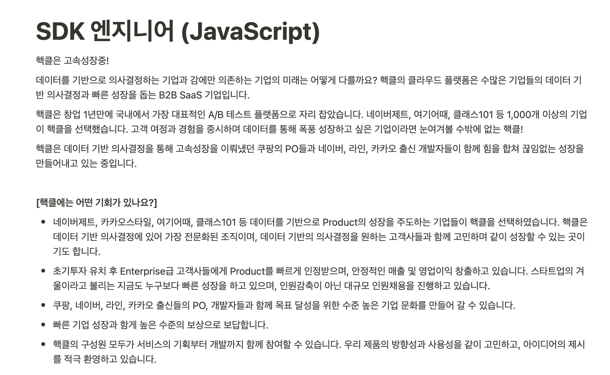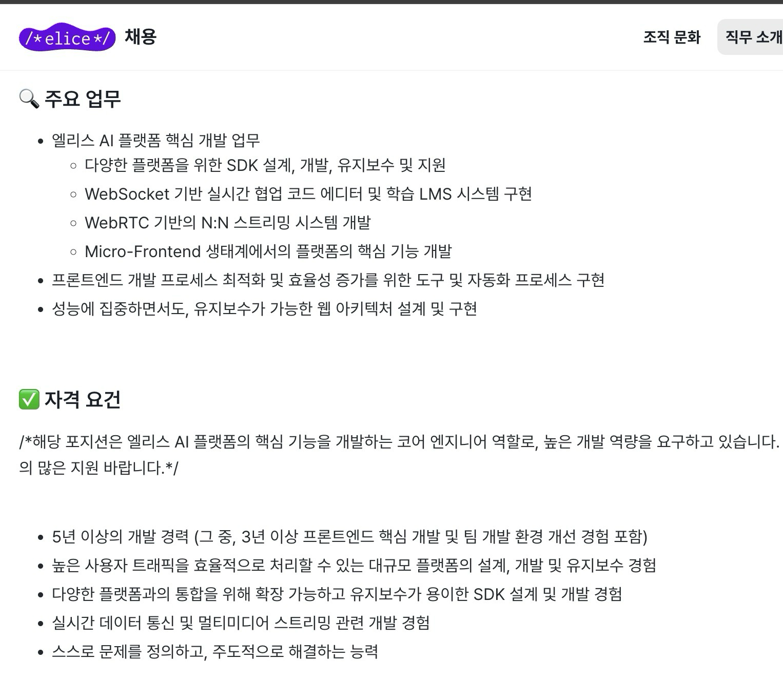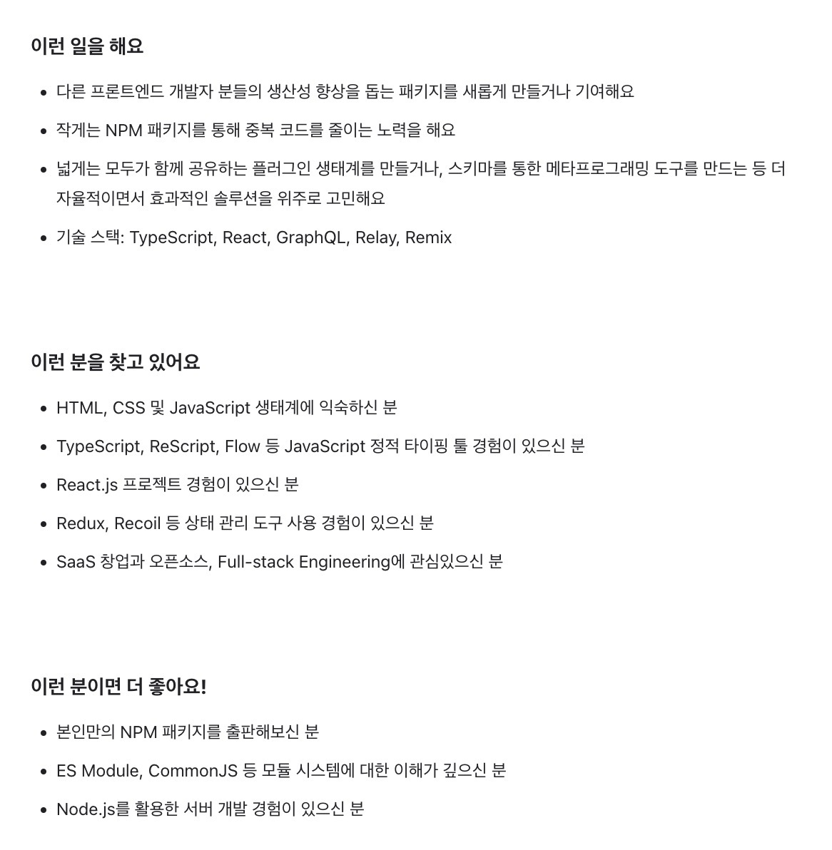 - 주로 SaaS 서비스(B2B, B2C), 커머스, 커뮤니티, 에디터 등 다양한 웹 서비스를 개발한다.