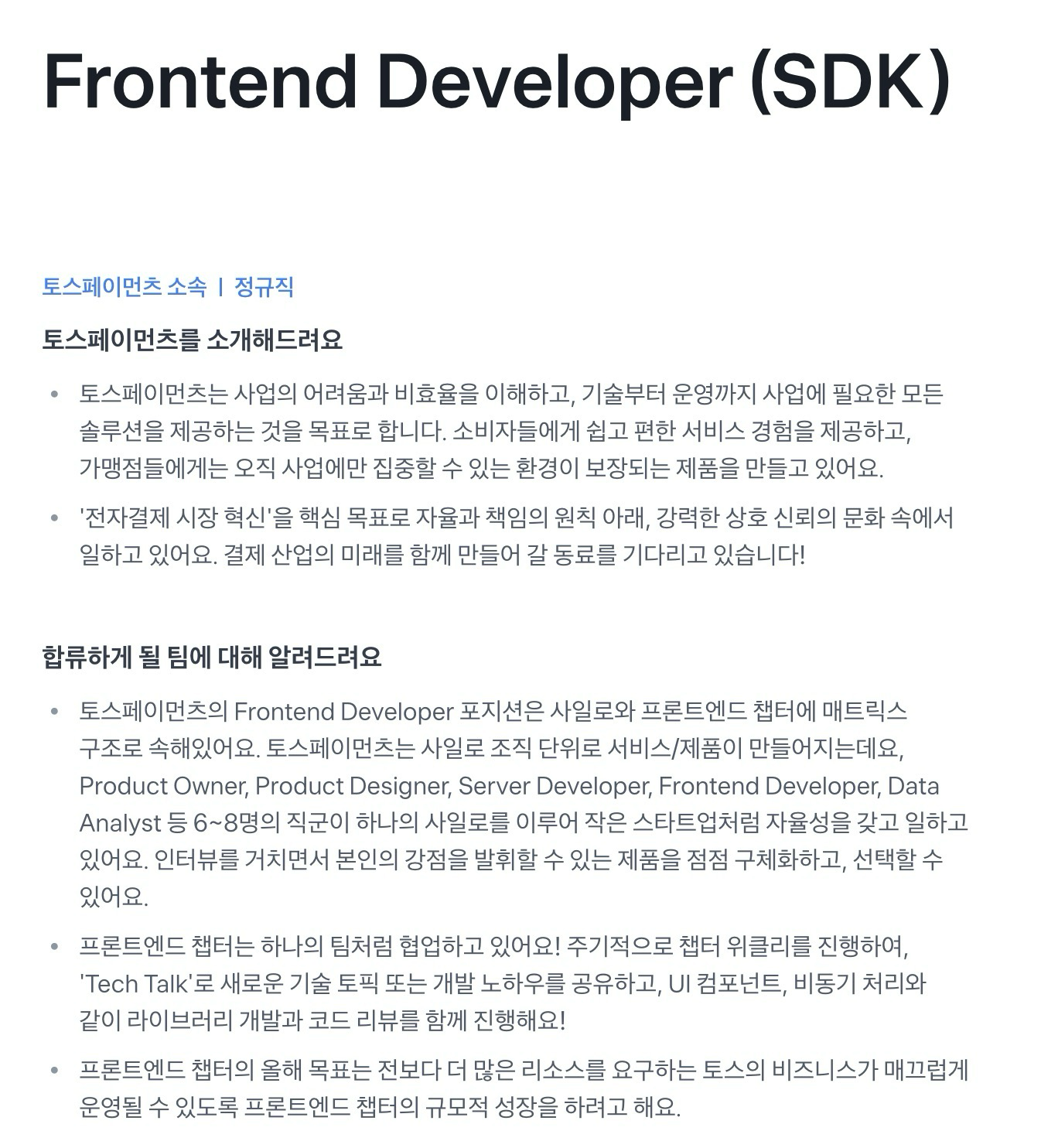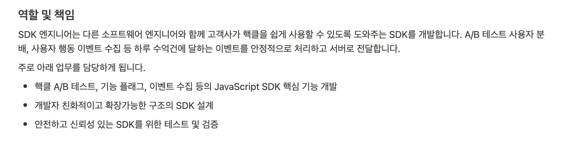 SDK Team은 회사의 특정 서비스나 기능을 외부 파트너나 고객이 활용할 수 있도록 소프트웨어(SDK)를 제공하는 팀이다.