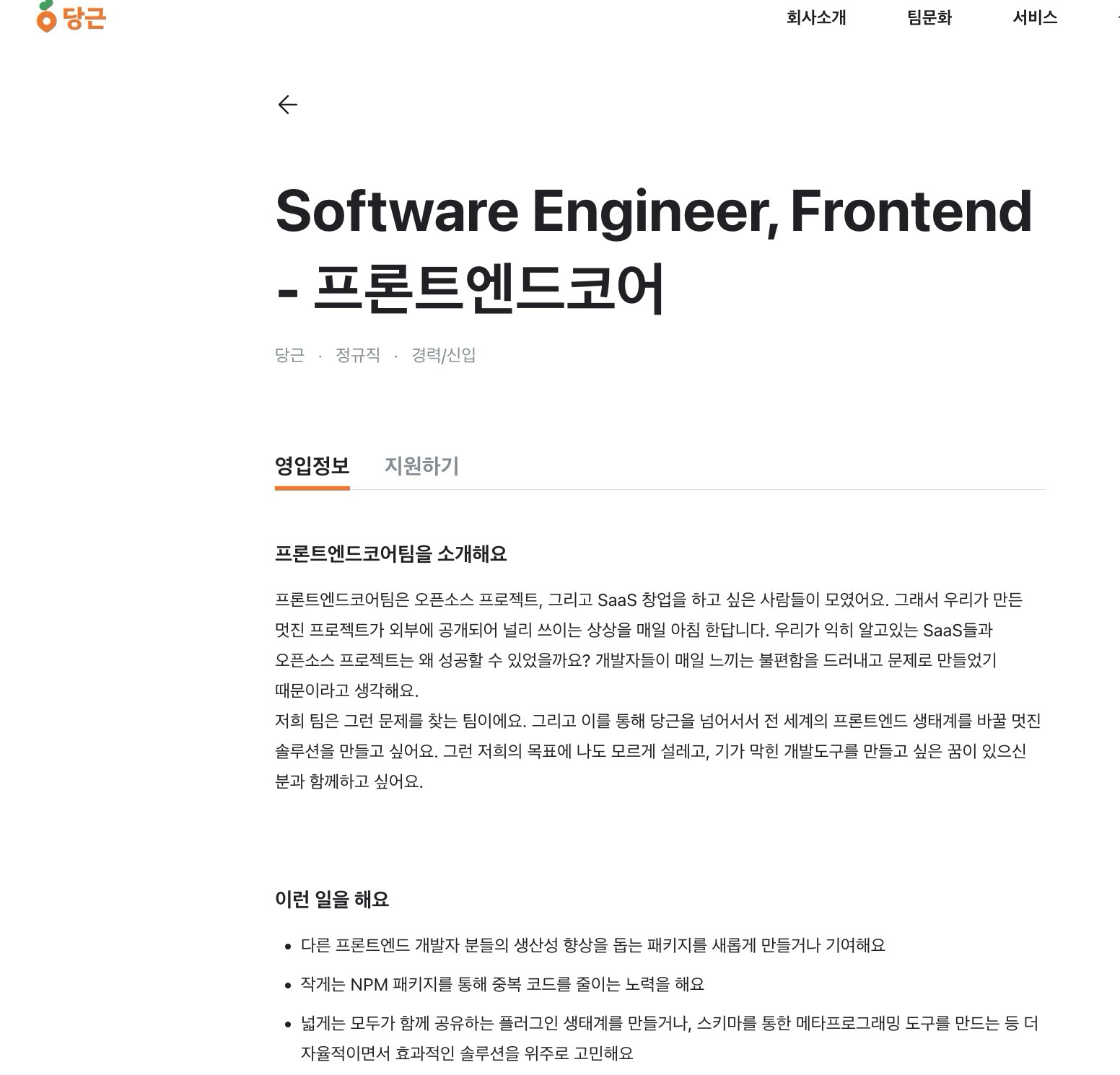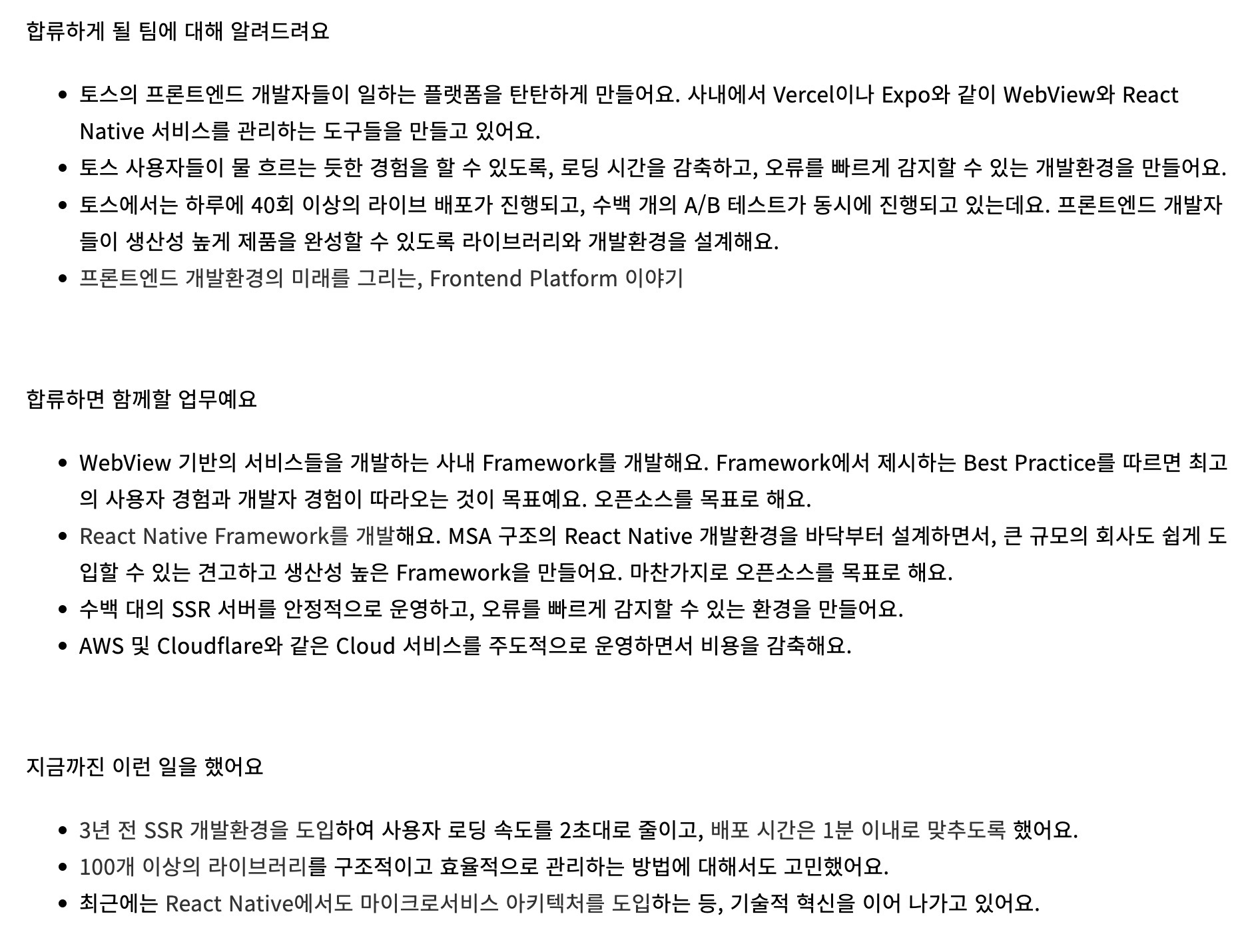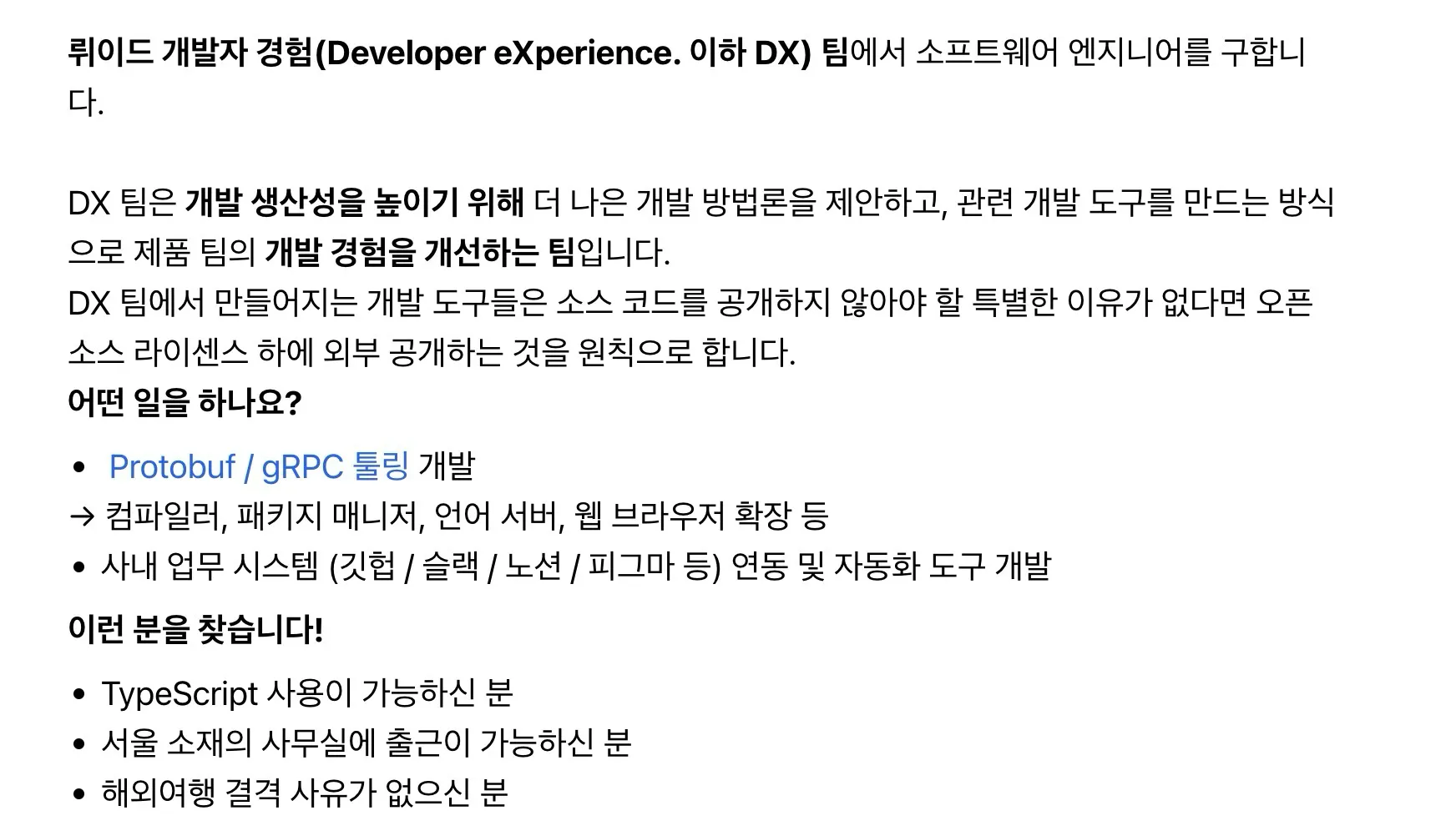 이 글에서 소개된 채용공고나 팀의 소개 글 중